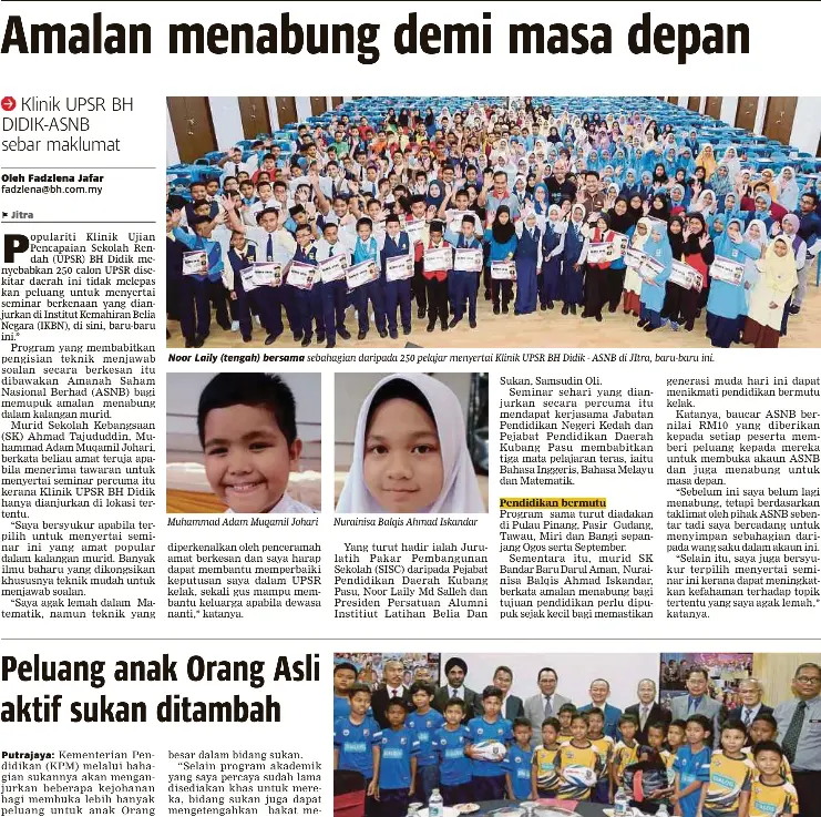 didik berita harian upsr 2018
